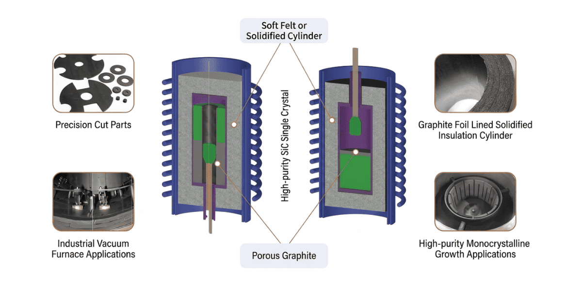 Pengeluaran semikonduktor:Ini ialah lapisan penebat utama untuk persediaan relau pertumbuhan kristal monohabluran silikon dan SiC.
